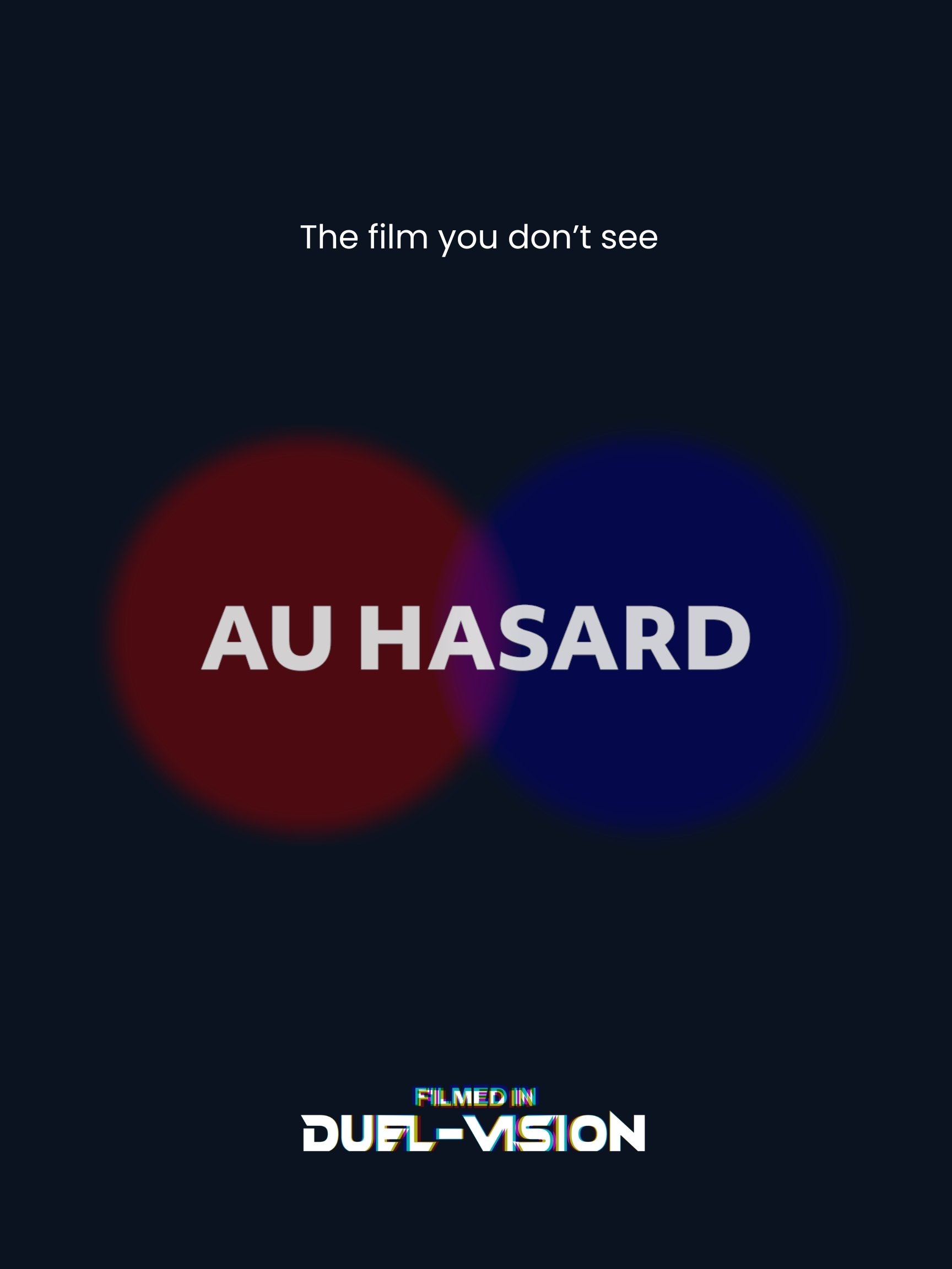 "Au Hasard" is a nine-minute experimental essay in perceptual control. Projected through overlapping red and blue image streams, the film uses colour-filtered glasses to divide the audienceâs visual experience. Two people seated side by side may watch the same screen...but not the same movie. Blending archival propaganda, poetic narration, and formal play, the film explores how missed information is often the root of misinformation. Evoking Godard with a touch of William Castle, "Au Hasard" is both a cinema of ideas and an act of cinematic misdirection.