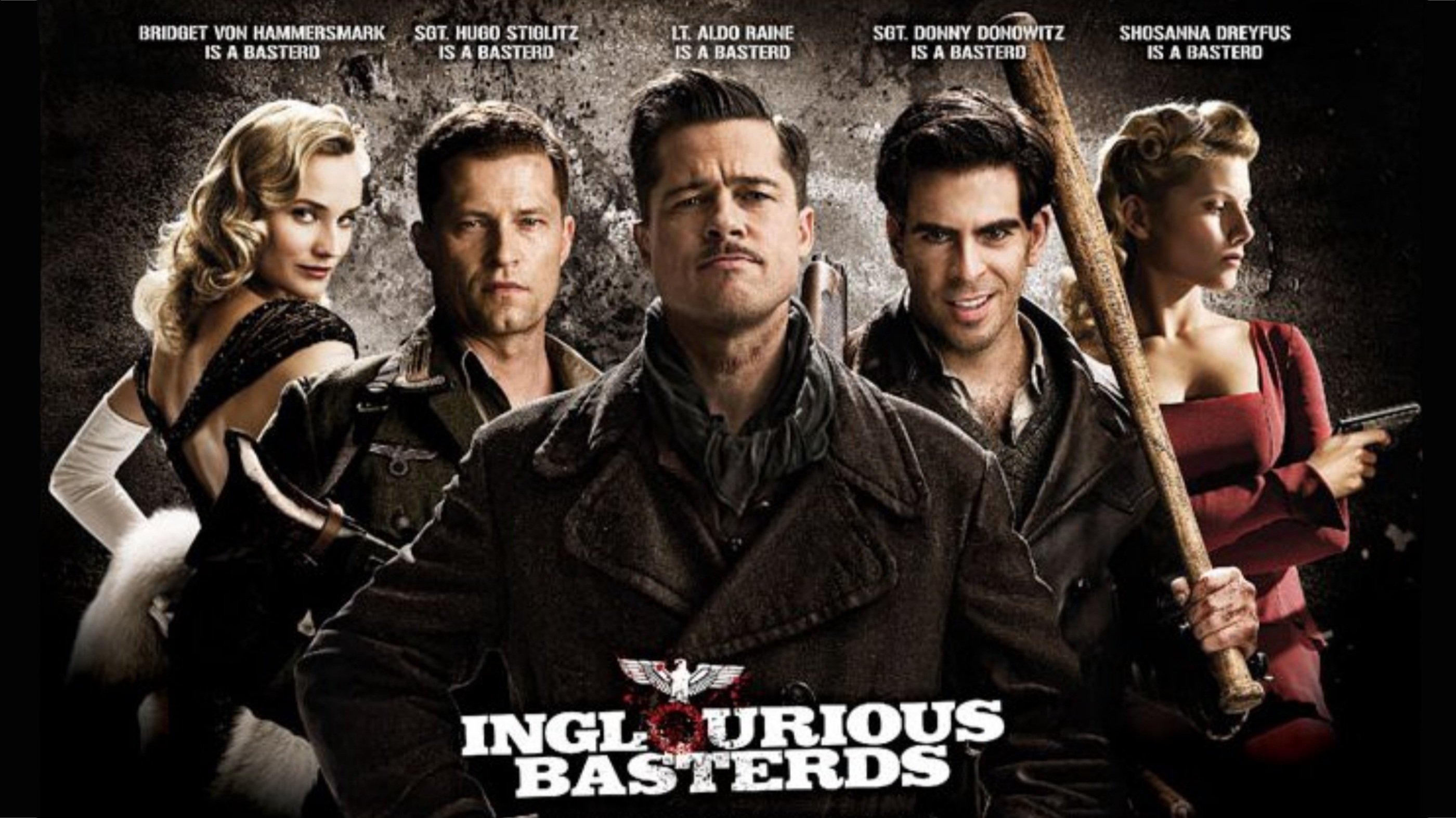 In Nazi-occupied France during World War II, a group of Jewish-American soldiers known as "The Basterds" are chosen specifically to spread fear throughout the Third Reich by scalping and brutally killing Nazis. The Basterds, lead by Lt. Aldo Raine soon cross paths with a French-Jewish teenage girl who runs a movie theater in Paris which is targeted by the soldiers.